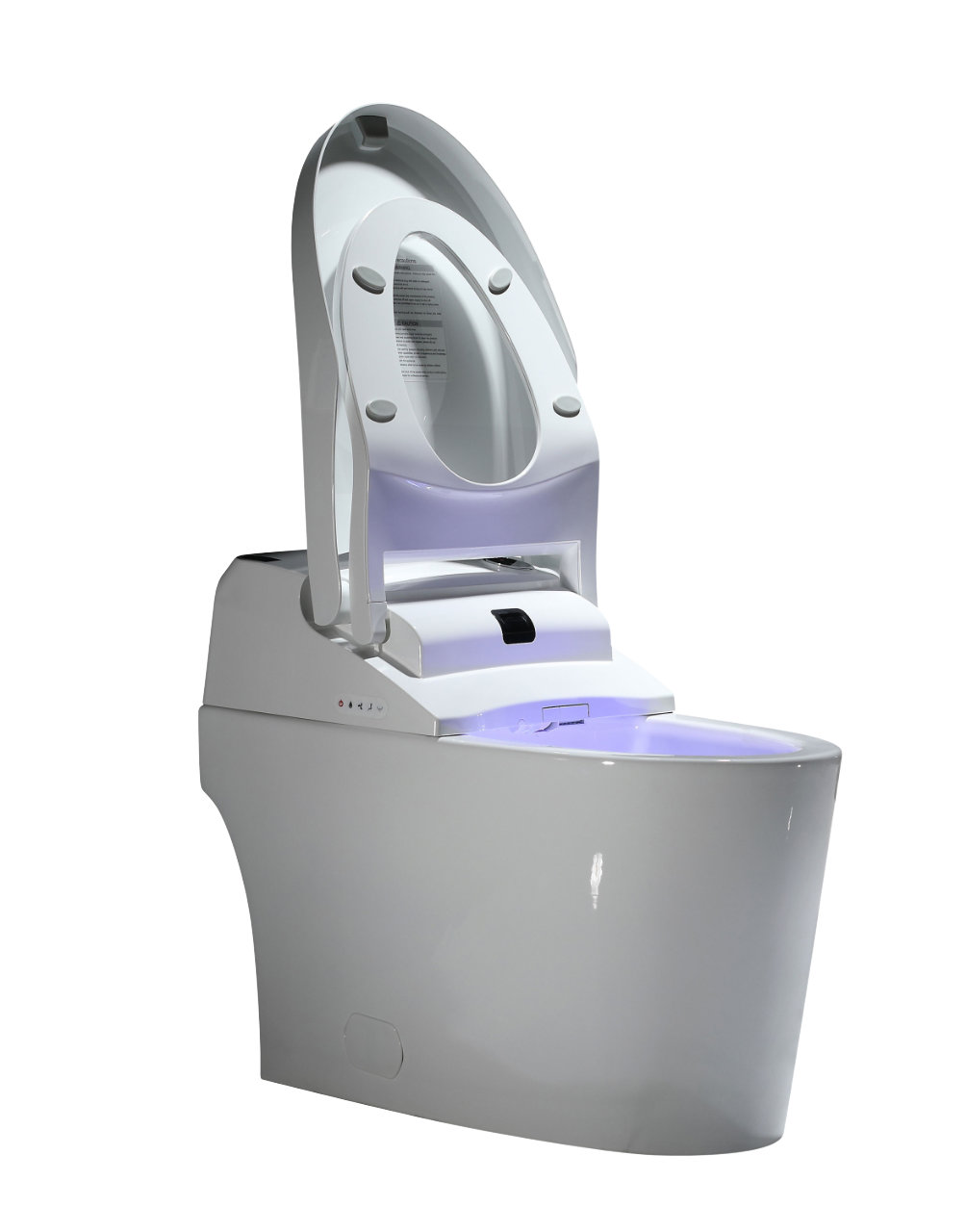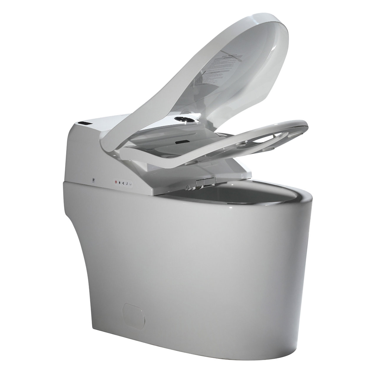 Update your en suite or guest quarters with this modern intelligent toilet design. Offering a wide range of features, it features 100" ceramic construction in a clean, classic white finish. Designed with dual-flush functionality, this toilet includes an elongate seat design that adds a contemporary silhouette perfect for the updated home. Treat yourself to the exceptional intelligent design of this toilet.