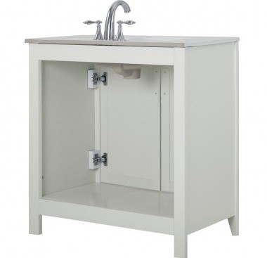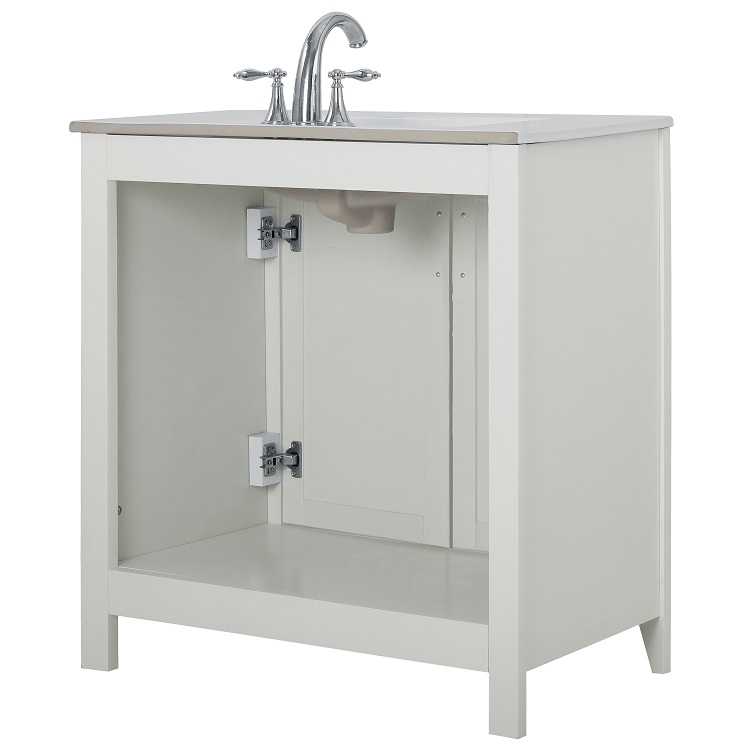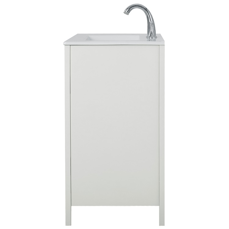 Put the finishing touches on a bathroom revamp with this clean, contemporary bathroom vanity cabinet and sink. It offers ample interior storage space combined with a white ceramic sink with a modern profile. The cabinet boasts two doors with plank fronts that impart a sense of casual elegance and is available in white or gray finish choices.